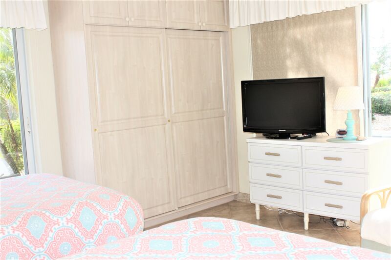 The primary bedroom offers a serene retreat with two full beds and easy access to the full bathroom. In the living room, a queen-size sleeper sofa provides additional sleeping arrangements for extra guests. You'll also appreciate the in-unit washer and dryer, ensuring that your beach towels and swimsuits are always fresh and clean.