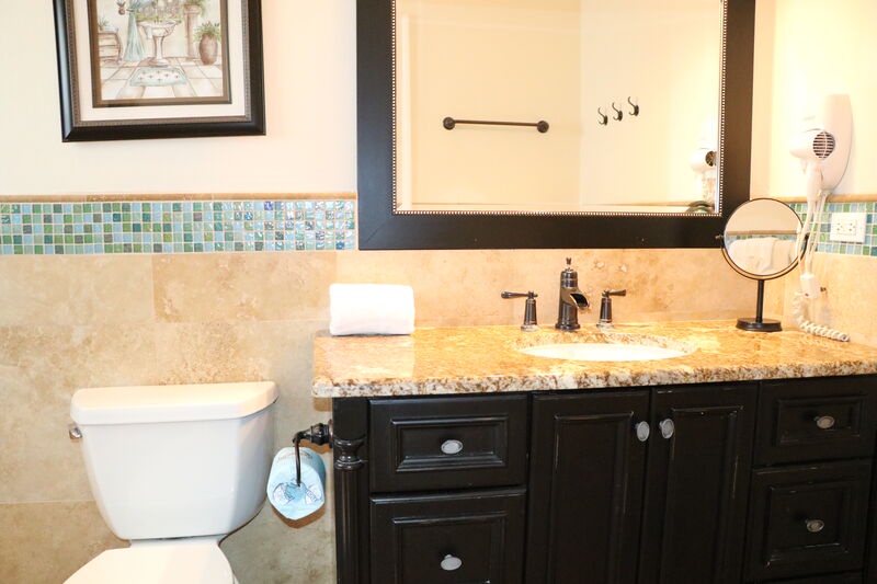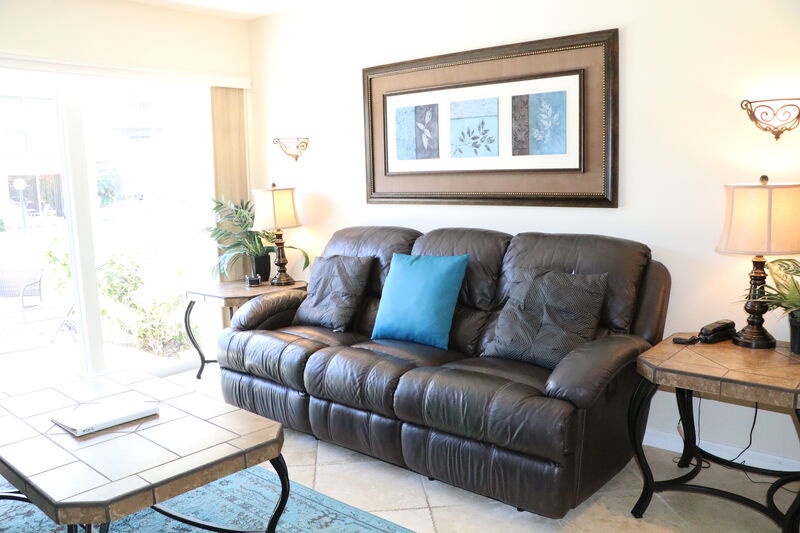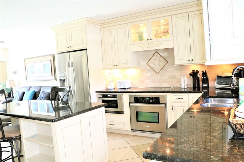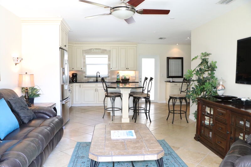 Inside Jamaica Royale 002, you'll find a stylish living room with full leather furniture and a smart TV for cozy movie nights. The elegant kitchen features stainless steel appliances, a large island with seating, and a seamless connection to the patio area, perfect for Al Fresco dining. Whether you're preparing a romantic dinner or enjoying breakfast in bed, this condo is ideal for culinary delights.