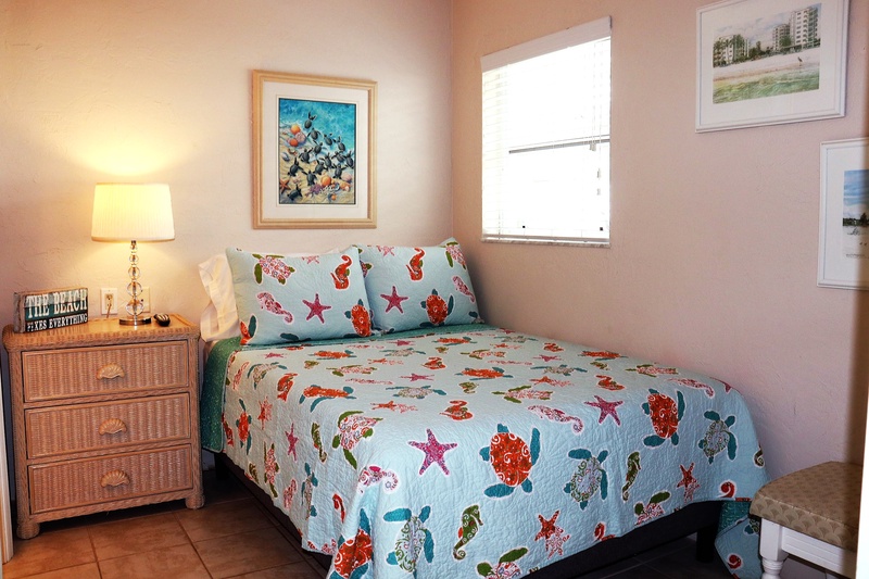 Delightfully updated two bedroom one and a half bath, with each bedroom having their own bathroom. This is a garden view unit located in the garden/pool area of our beautifully landscaped property. Enjoy any of the three heated pools, shuffleboard and BBQ after a day of relaxing on our famous sandy white beach, RATED #1 in the WORLD by Dr. Beach in 2011 and 2017. Delight in sunset evenings or relax on your back patio. You will love this unit! This unit has a 7 night minimum Saturday to Saturday rental policy, but can be booked for less to fill gaps. We will do our best to accommodate any request.