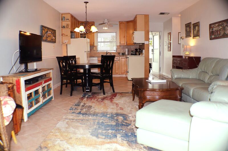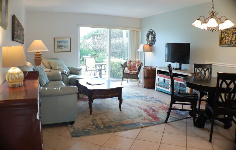 Delightfully updated one bedroom one bath. This is a garden view unit located in the garden/pool area of our beautifully landscaped property. The bedroom has a king bed and a queen sleeper sofa in the living room. Enjoy any of the three heated pools, shuffleboard and BBQ after a day of relaxing on our famous sandy white beach RATED #1 in the WORLD by Dr. Beach in 2011 and 2017. Delight in sunset evenings or relax on your back patio. you will love this unit! This unit has a 7 night minimum Saturday to Saturday rental policy, but can be booked for less to fill gaps. We will do our best to accommodate any request.