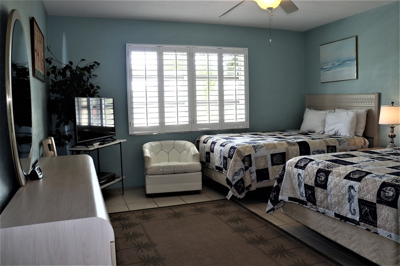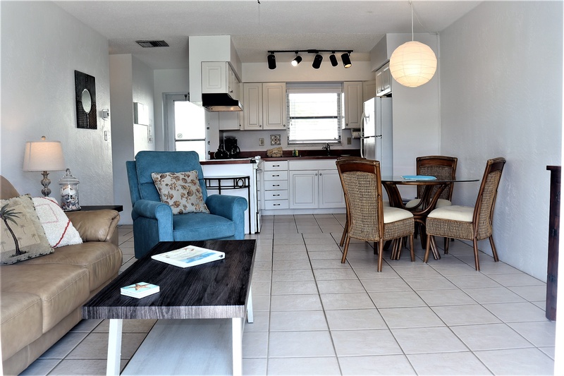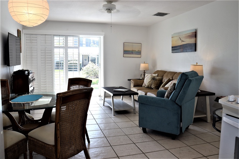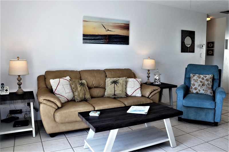 Super comfortable unit in a great location with everything you need for a perfect stay at one of the best white sand beaches in the world. Unit is close to the heated pools and to the beach; it is only steps to the BBQ and shuffleboard area. Enjoy sunning on your beautiful landscaped private patio. Flat screen TV and leather furniture including pullout couch in the living area. There are two queen size beds plus a TV in the large bedroom. This condo will provide you with all the comforts of home. Washer and dryer are provided in the unit for your convenience, as well as a full kitchen with a lot of extras. Perfect combination of sun, sea, and sand! This unit has a 7 night minimum Saturday to Saturday rental policy, but can be booked for less to fill gaps. We will do our best to accommodate any request..