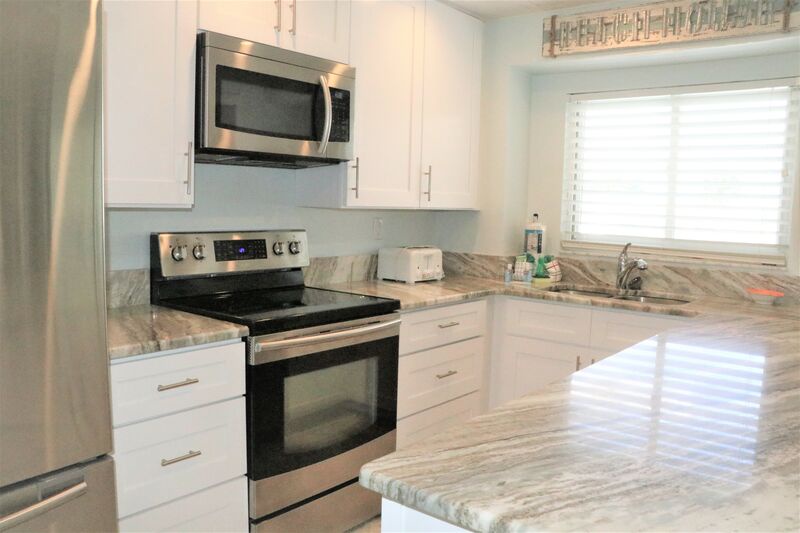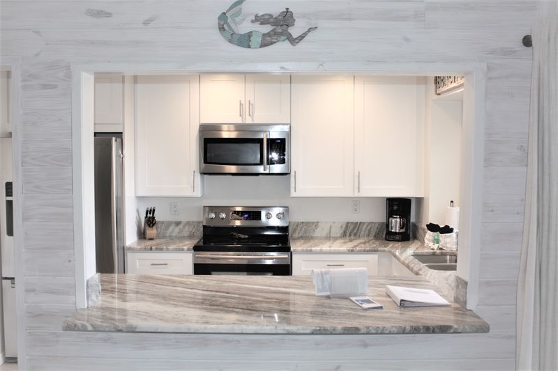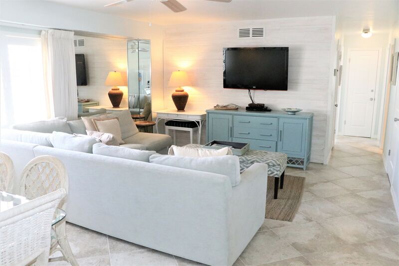 Jamaica Royale 205 has multiple seating areas, providing plenty of room for family gatherings. There is a great movie night setting with a sectional sofa and TV, plus a second area with a queen sleeper sofa, perfect for extra guests or relaxation after a day at the beach. The updated kitchen includes stainless steel appliances and everything needed for meal preparation. Enjoy meals at the dining table or step onto your private balcony to dine al fresco while taking in a glimpse of the beach.