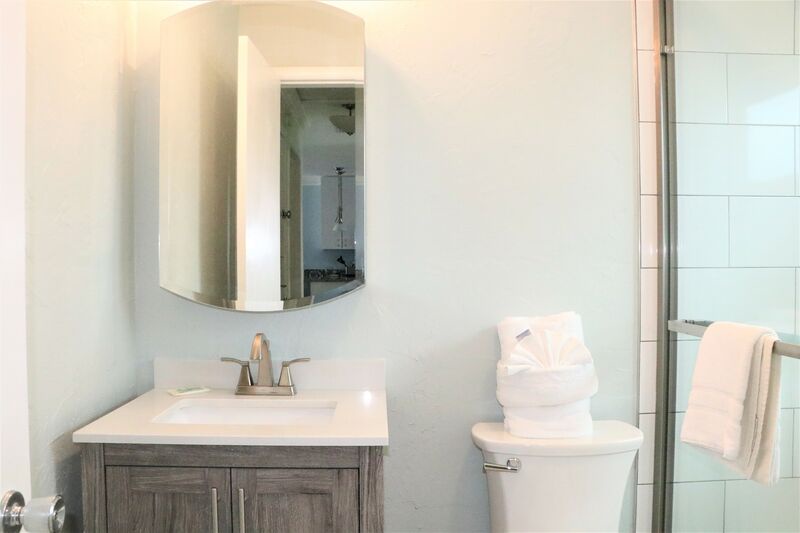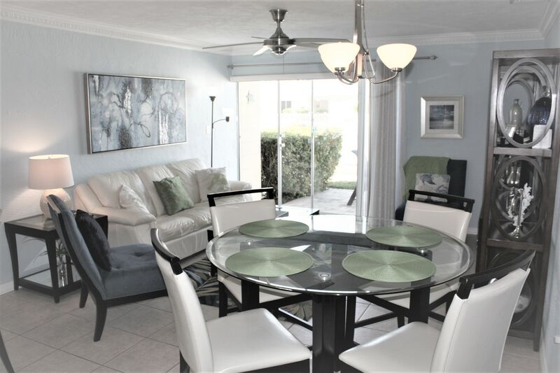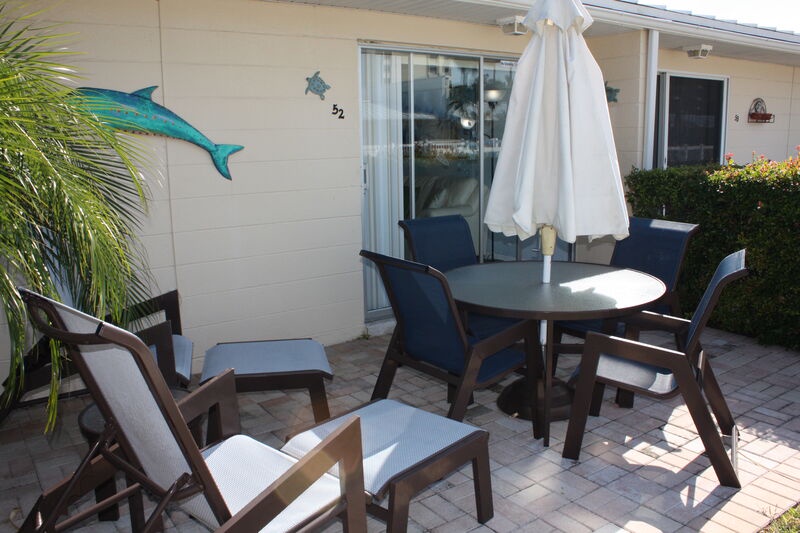 "Casual Elegance" can best describe this charming 1 Bedroom, 1 Bath Villa on world-famous Siesta Key Beach. Unit 52 was remodeled recently, and offers a crisp, clean look and vibe for your vacation escape. The unit received numerous upgrades, and comfortably sleeps 2 guests. Everything in the unit is new, including stainless steel refrigerator, dishwasher, stove and microwave, small kitchen appliances, granite counter tops, breakfast bar, dining set, leather sleep sofa, upholstered chairs, coffee and end tables, area rugs, art work, entertainment center, pendant lights, chandelier, ceiling fans, coffee makers, Emeril cookware and knives for the gourmet, toaster oven, telephones, 48" Sony Bravia HD TV, 32 HD TV, king sized bedroom set, high grade mattress and bedding. It's all new, fresh, and bright. The unit overlooks pool #1 (also known as the "quiet pool"), offers brand new pavers in the front and rear of the unit, and features Florida Patio's newest high-end hurricane line of custom made patio furniture, including two recliners, dining table, chairs and umbrella. Unit 52 offers the perfect setting for a couple. The unit also features a stacked GE washer/dryer unit. Some added features that make this unit special include a reverse osmosis water filtration system for the refrigerated drinking water dispensing system and built-in ice maker. No bottled water needed here! And, to facilitate beach time, the unit has folding beach chairs, umbrella and stand, beach toys, noodles, three different sized coolers and multiple ice packs for your use. Since the entire complex is on the "beach side" of the street, you will only need to walk a few minutes to step into the fluffy, white sand - no crossing busy streets! Reserve a great unit in a gorgeous setting today. As many say, this is paradise. Please check out the unit photos to see for yourself! Unit 52, your crisp clean vacation villa; casual elegance. Reserve your time today - either online or contact one of our Rental Agents. Free long distance for USA and Canada. This unit has a 7-night minimum Saturday to Saturday rental policy, but can be booked for less to fill gaps. We will do our best to accommodate any request. Thank you for your interest in Unit 52!