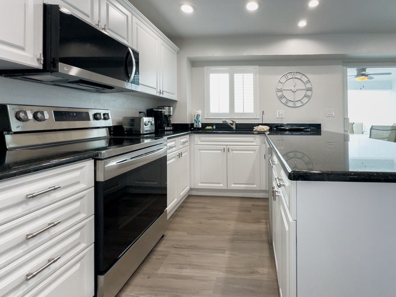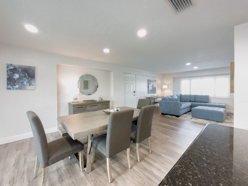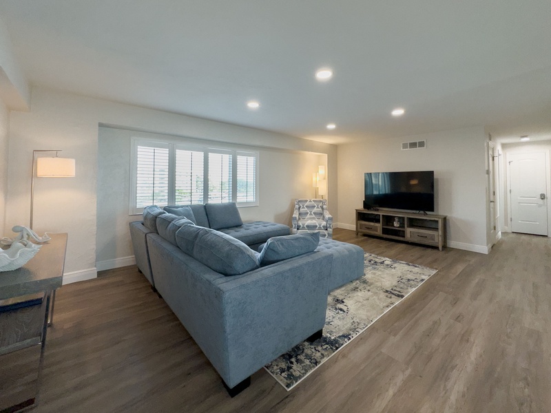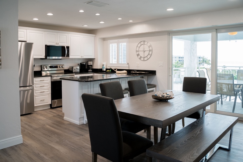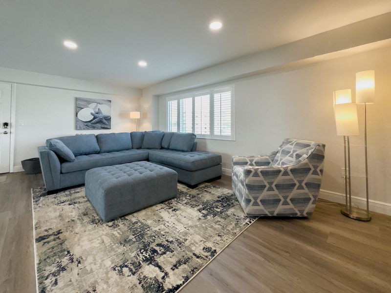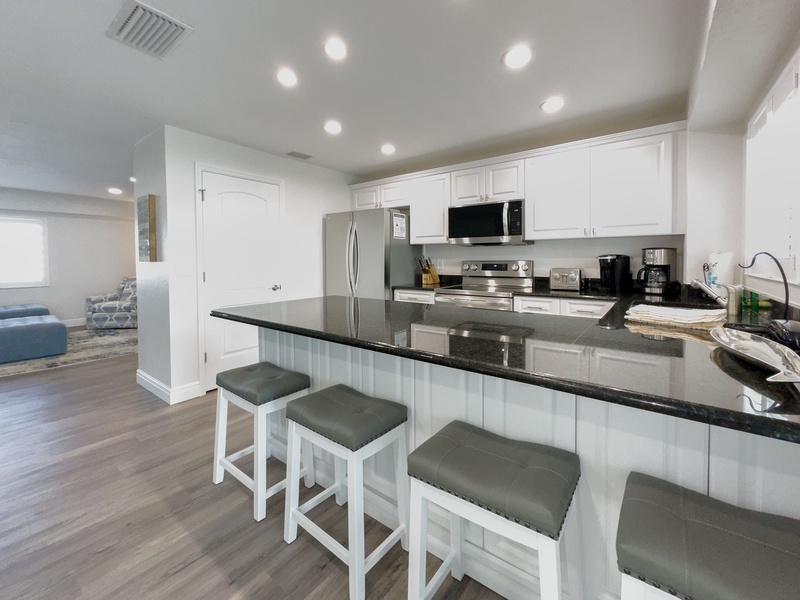 Step inside Jamaica Royale 405 and discover a beautifully designed, coastal-inspired living space featuring a plush sectional sofa, perfect for relaxing after a sun-soaked day. The modern dining area comfortably accommodates six, making it ideal for family gatherings or entertaining friends. The fully equipped kitchen boasts sleek stainless steel appliances, a breakfast bar for casual dining, and all the essentials for whipping up delicious meals and snacks.