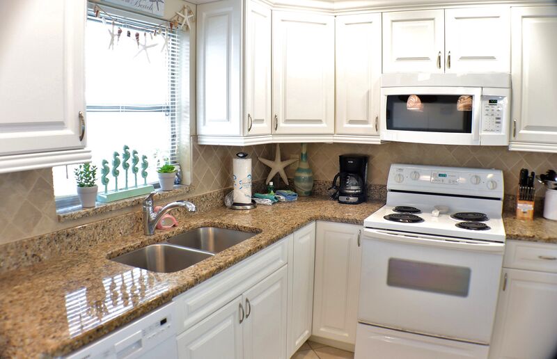 Welcome to Unit 62, which was completely renovated in June, 2011. The kitchen has granite countertops, dishwasher, porcelain tile floors throughout. Washer, dryer, king bed, queen sleeper sofa, large bathroom with walk-in shower, and only a 4 minute walk to our private beach located on the #1 Beach in the United States. Feel free to enjoy all the amenities on our beautiful property, including shuffleboard, three freshwater heated pools and our two BBQ's; one beach side and one on the community patio. This unit has a 7 night minimum Saturday to Saturday rental policy. We will do our best to accommodate any request.