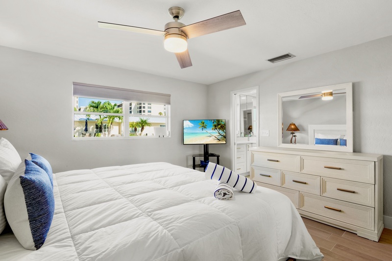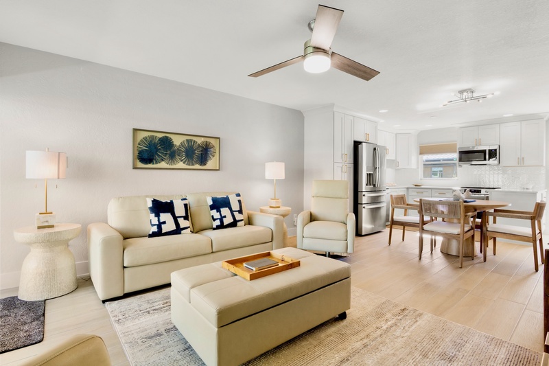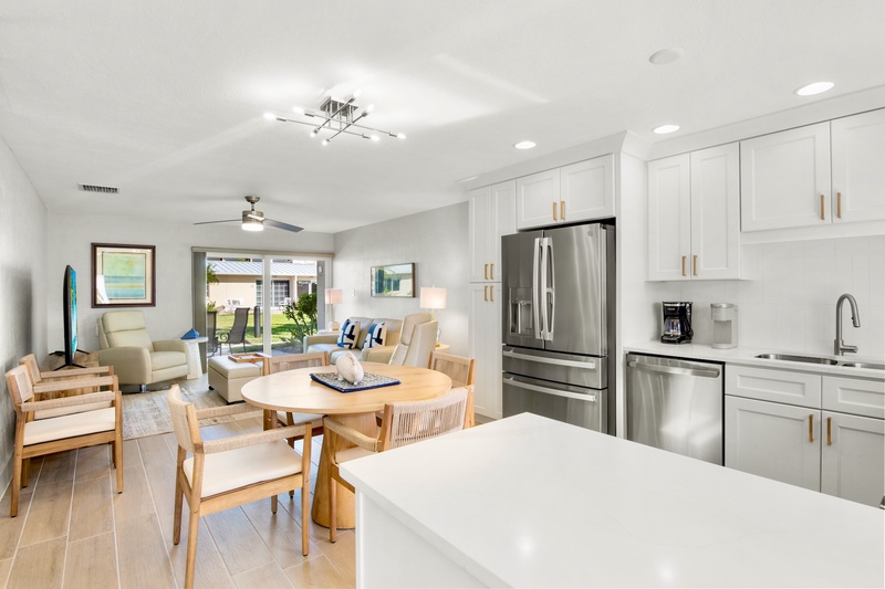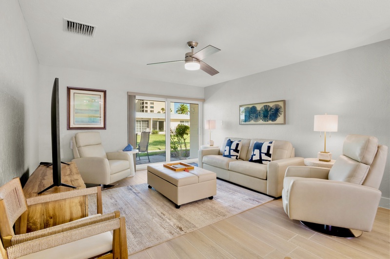 Lovely updated 2 bedroom 2 bath garden view unit located in the garden/pool area of our beautifully landscaped property. This unit offer it's own washer/dryer, grab bars in the master tub/shower, granite counter tops in the kitchen, leather upholstery in living room, and travertine tile. Enjoy any of the 3 heated pools, BBQ areas at beachside or community patio, and shuffleboard court on the grounds. This unit has a 7 night minimum Saturday to Saturday rental policy, but can be booked for less to fill gaps. We will do our best to accommodate any request.