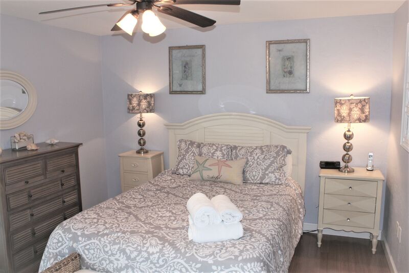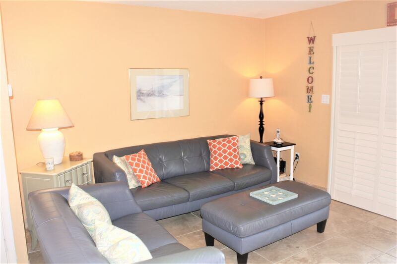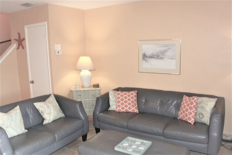 This unit has 2 floors with a flight of stairs, please be aware this may prove difficult to children or elderly people. NEWLY RENOVATED!!!! 2 story penthouse 2 bedroom/2 bath unit located in the garden/pool #2 area. Bedroom and bathroom upstairs, bathroom and living area downstairs. Enjoy the tropical landscaping in the garden area and swim in any of the 3 heated pools, or enjoy a BBQ Beachside or enjoy our other BBQ and shuffleboard at the Community Patio. This unit has a 7 night minimum Saturday to Saturday rental policy, but can be booked for less to fill gaps. We will do our best to accommodate any request.