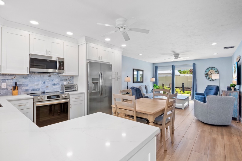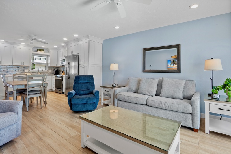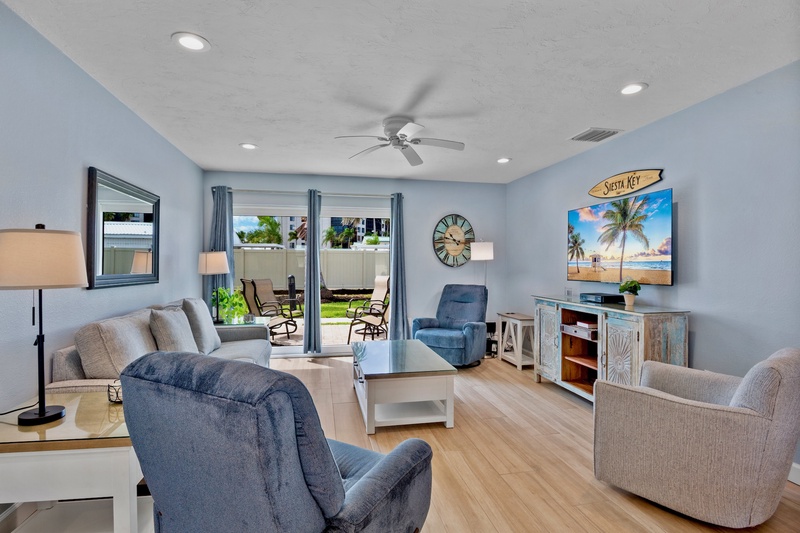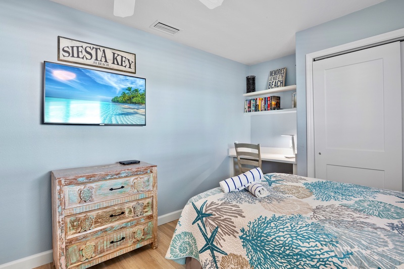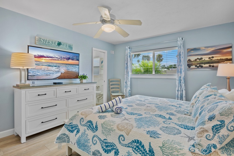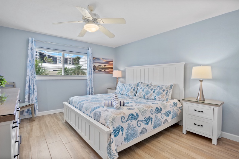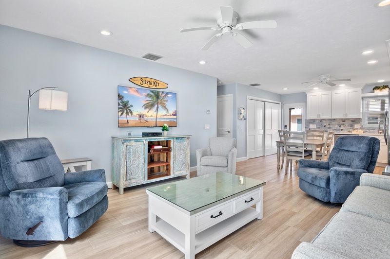 Welcome to the most lovely place in Paradise! The unit that offers two generously sized bedrooms (plus a living room sleeper/sofa) that allows for up to six guests. The MBR has a king-sized bed and the guest room has two full-sized beds. Both bathrooms have been updated. An eat-in kitchen with a microwave, an oven and a Keurig coffee pot, an in-unit washer and dryer, tv's in both bedrooms and a fresh, lively and recently furnished living area with a brand new television all make this unit seem like your home away from home. A patio allows for lounging with your morning coffee or late afternoon cocktails. The location is ideal for watching sunsets, walking or driving into Siesta Key Village with its fabulous restaurants and daily music, renting boats, para-sailing, paddle boarding, kayaking or just staying back, reading and relaxing. This unit has a 7 night minimum Saturday to Saturday rental policy, but can be booked for less to fill gaps. We will do our best to accommodate any request.