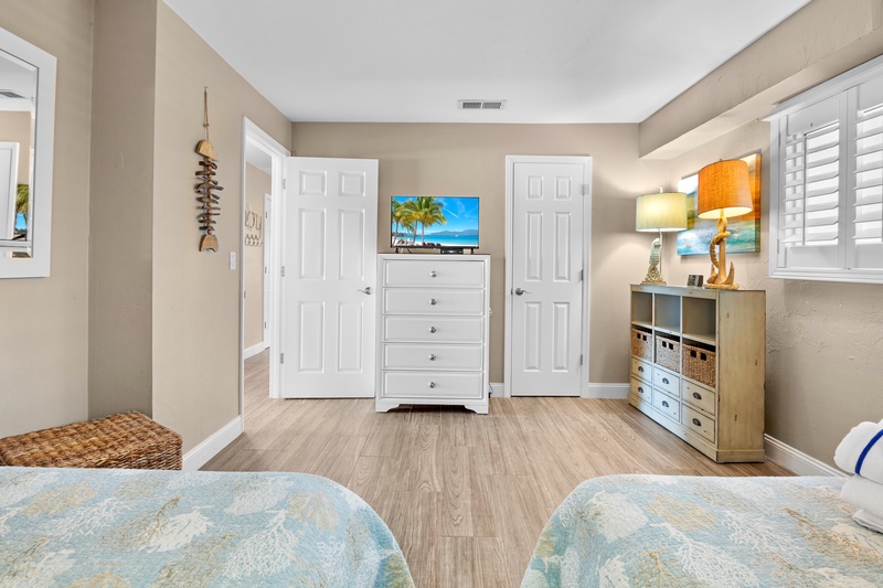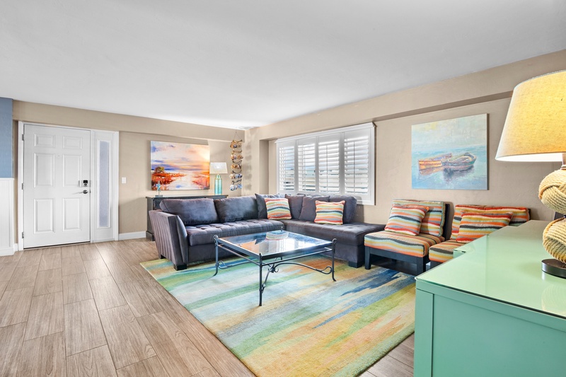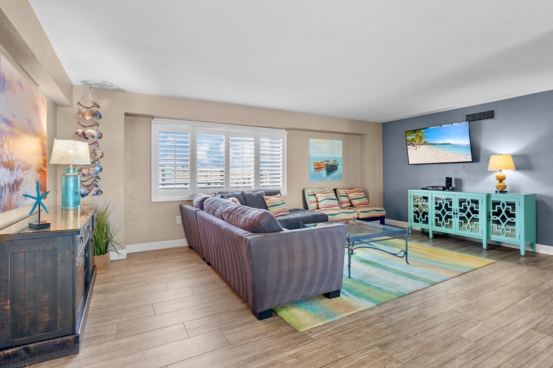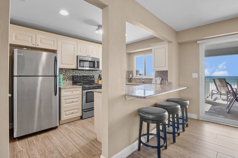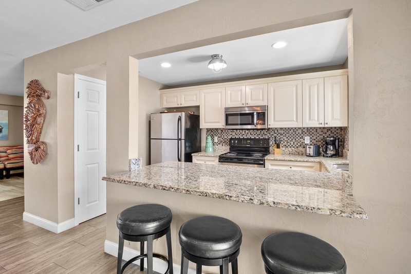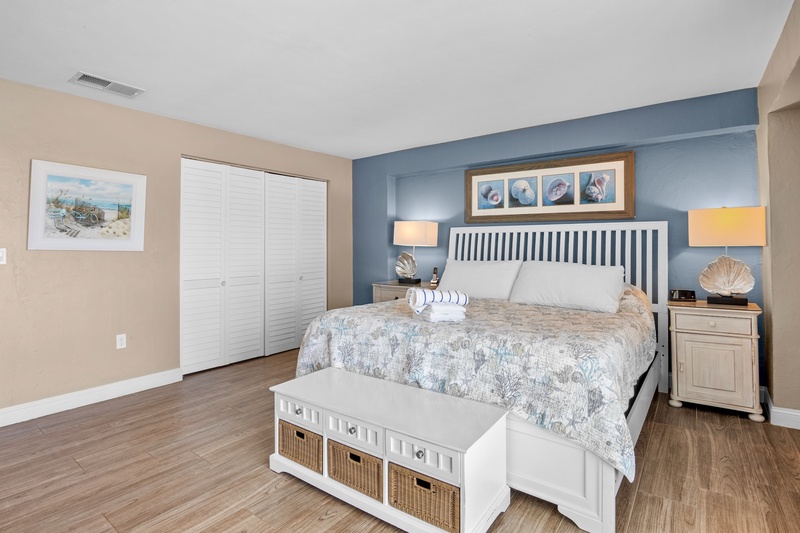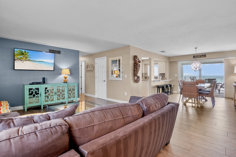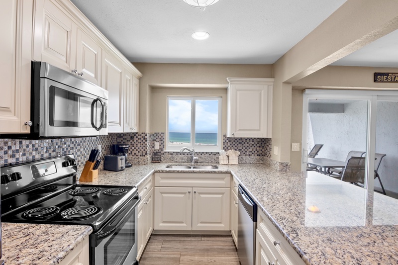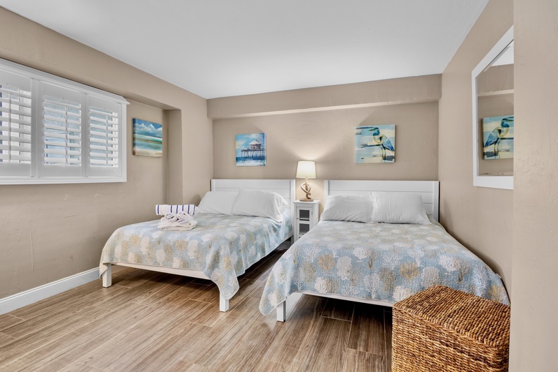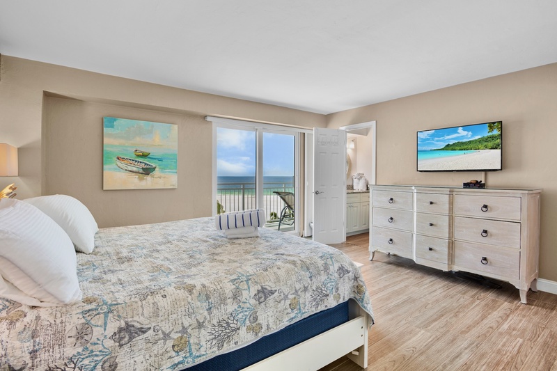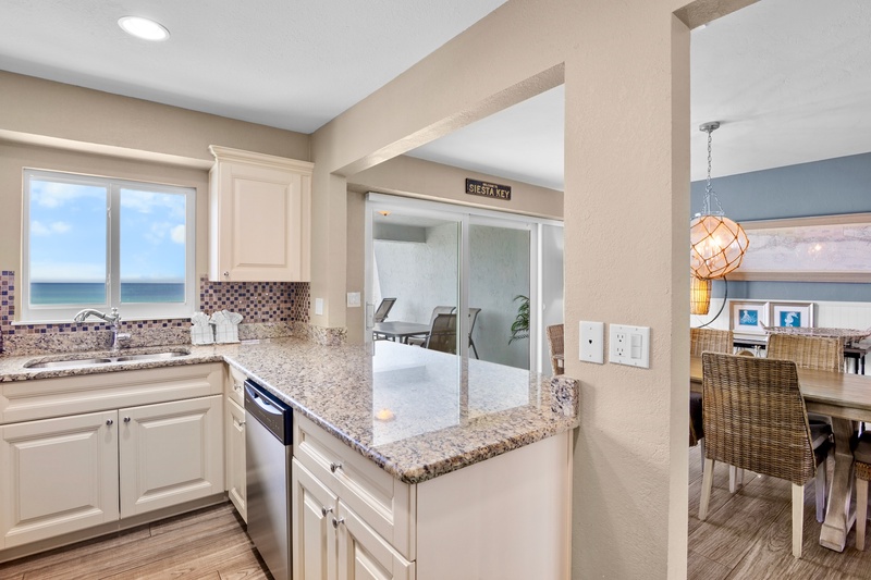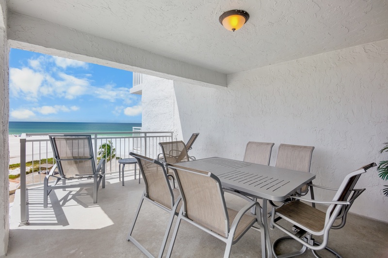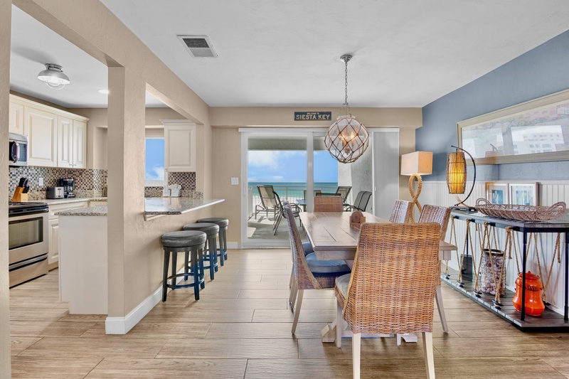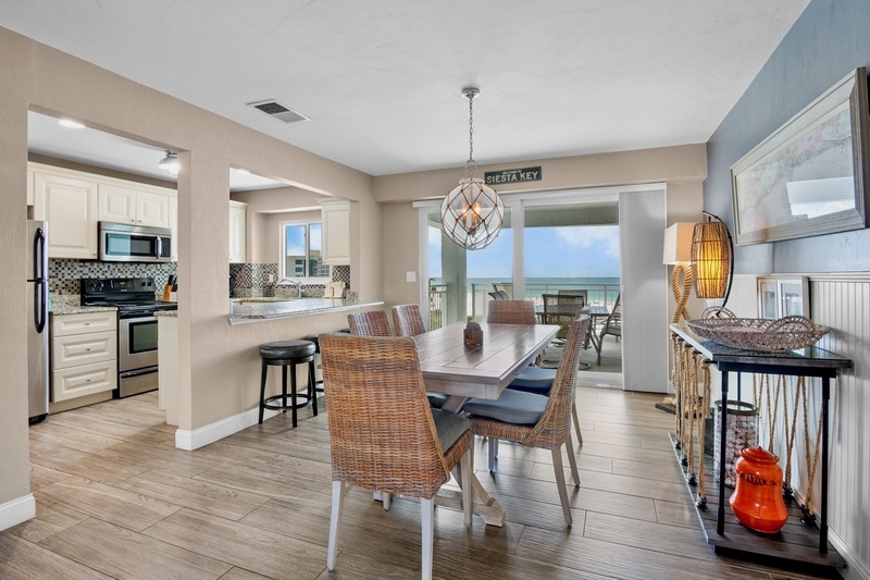This unit is fully equipped with all of the amenities of home. It offers private, secure FIOS Internet service throughout. It also has significant upgrades which include: stainless appliances and wood cabinets in the kitchen, solid granite countertops in the kitchen and bathrooms, and beautiful wood-look tile floors in the main living areas. You will not mind washing dishes in this kitchen with the view of the Gulf! The dining area features a solid wood table with seating for six on gorgeous sea-grass dining chairs. The granite kitchen counter pass through offers additional seating for three. From the dining room, the sliding glass doors open onto the covered balcony. Enjoy your meals on the balcony dining table with seating for four while enjoying the view of the beach and a Siesta Key sunset. The living room has a large, hi-definition flat-screen television with DVR. The sectional couch offers plenty of seating for the whole family. The spacious master bedroom offers a king size bed and it's own flat-screen TV. The sliding glass doors lead directly onto the balcony and a view that will take your breath away. The en suite bathroom has new tile throughout and a tub/shower. The guest bedroom offers two full size beds and it's own flat-screen TV. The guest bathroom has new tile throughout and a tub/shower. Jamaica Royale is beautifully maintained and is a very clean and friendly complex. There are three heated, fresh water pools; the beachfront pool is just around the corner from the elevator! There is a laundry room in our building on the first floor for the convenience of our guests. Two gas grills on property give you the opportunity to cook out in our beautiful Florida weather. Grill your meal beachside, and then enjoy it in our private beach area under one of the Tiki huts! Lounge chairs are also provided in this private beach area. This unit has a 7 night minimum Saturday to Saturday rental policy, but can be booked for less to fill gaps. We will do our best to accommodate any request.