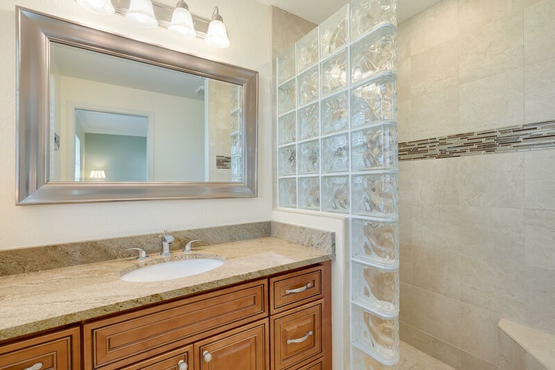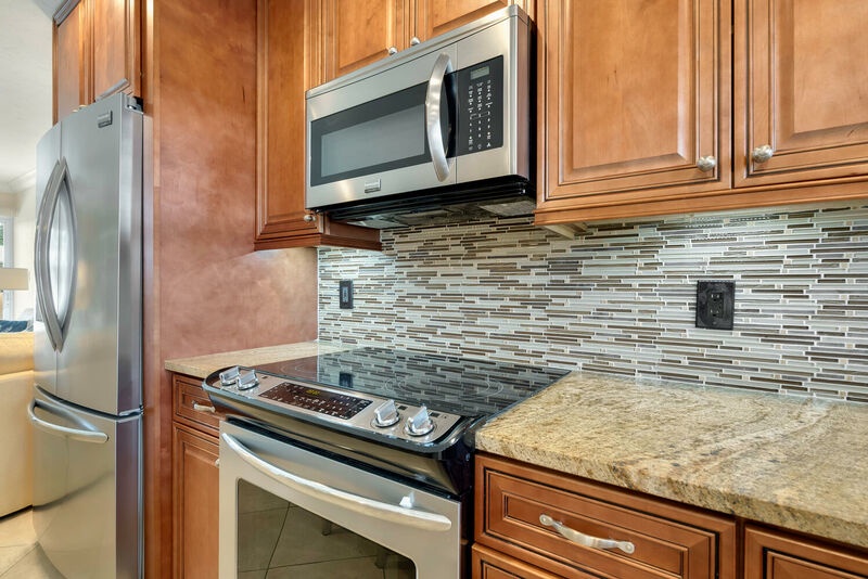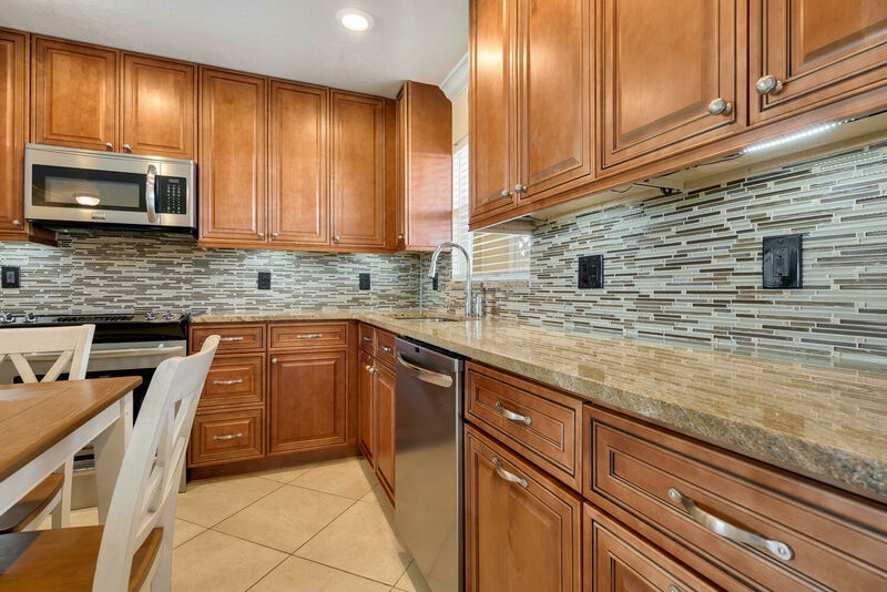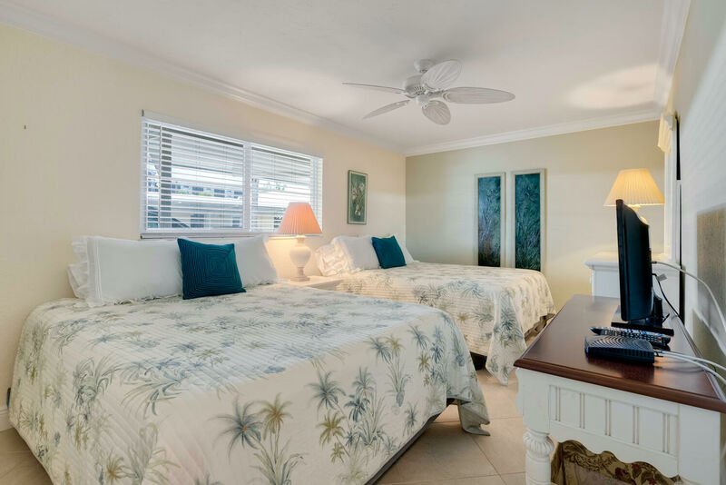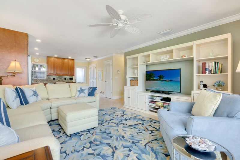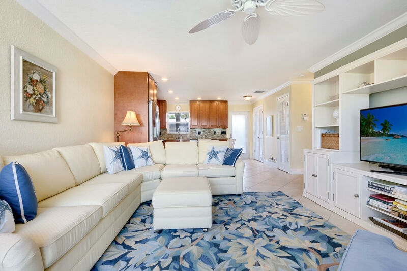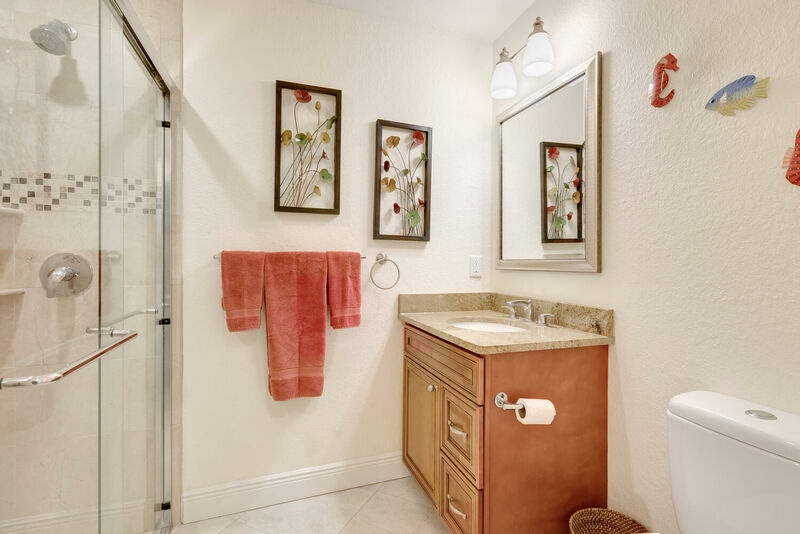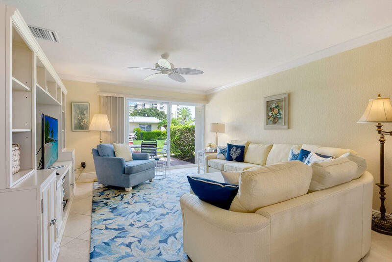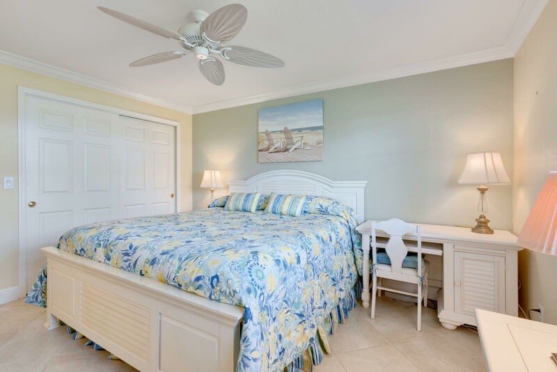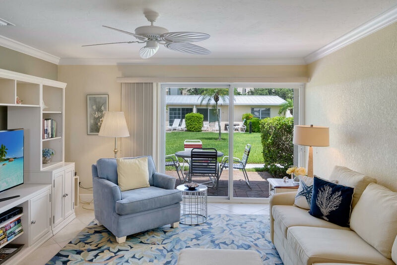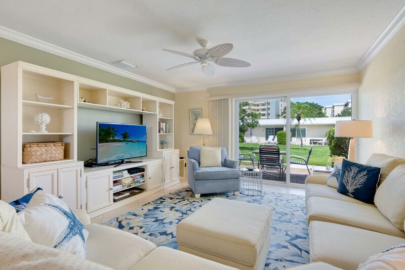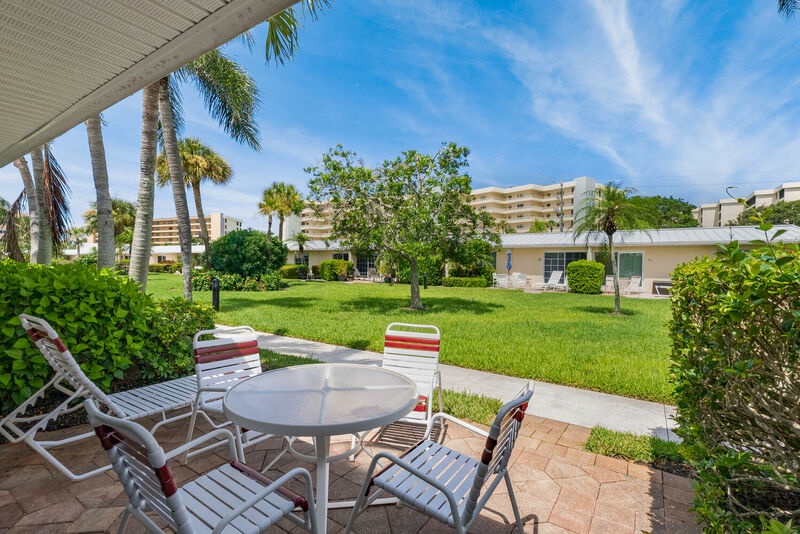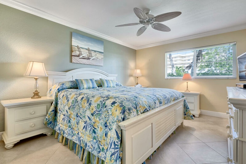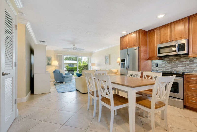 Beautifully updated garden villa, steps away from Jamaica Royale's private beach on the white sands of world-famous Siesta Key Beach. This gem features a large dine-in kitchen, granite countertops and all stainless-steel appliances. Enjoy loads of sunlight and a large living room with a walk-out to your own private patio and garden walkway to the beach. Two large bedrooms, one with a queen and bunk bed and the king in the main suite. The unit is equipped with a washer and dryer for your convenience. Covered parking just outside your front door. You have access to 3 heated pools, shuffleboard, and grills located on the Jamaica Royale property.Â