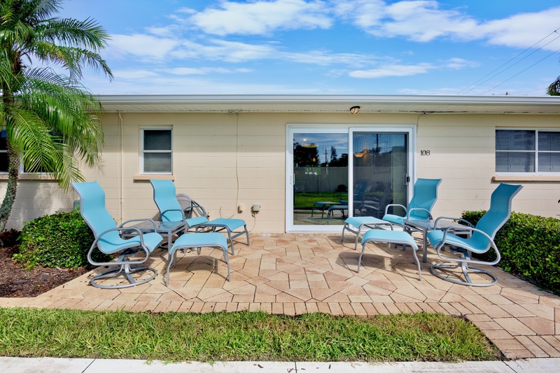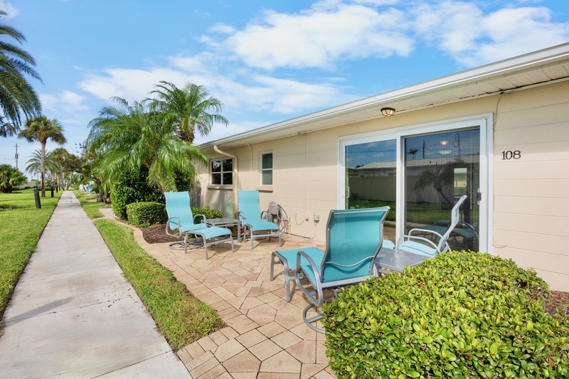 This villa was thoughtfully renovated with an open floor plan and enlarged bathrooms, each featuring sleek walk-in showers. Step outside to your shaded private patio and relax on swivel rockers with ottomans. Perfect for unwinding after a day on the beach. Guests also enjoy access to Jamaica Royale’s sparkling pools, shuffleboard courts, and community grills for alfresco dining.